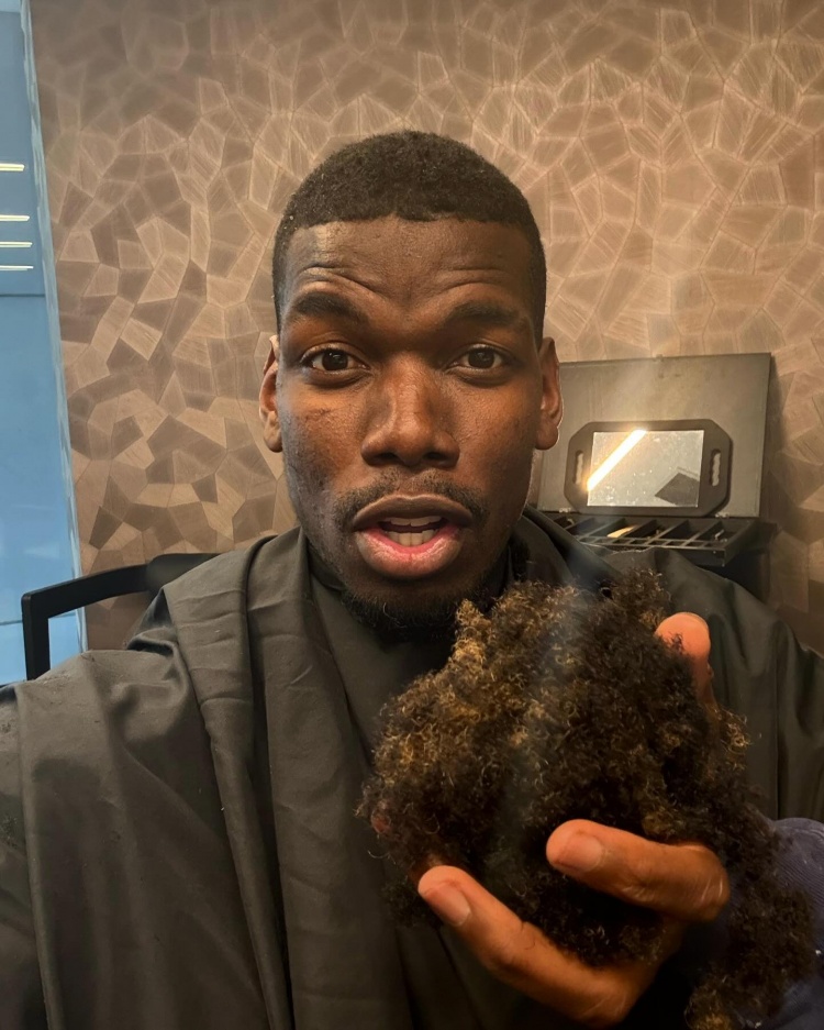 博格巴社媒曬出自己坐在理發(fā)椅子上的照片,他的手里拿著一大團(tuán)剪下的頭發(fā),配文:“新發(fā)型還是舊發(fā)型,你們更喜歡哪一個(gè)?”