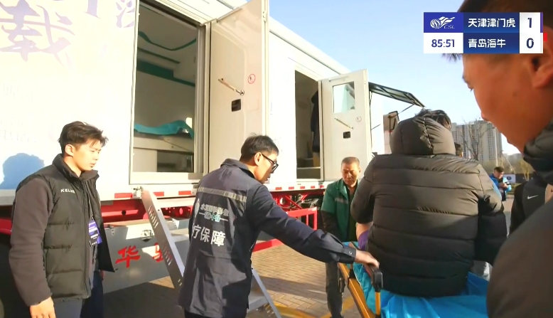 比賽第75分鐘,薩爾瓦多被林創(chuàng)益飛鏟后傷退,轉(zhuǎn)播鏡頭直接切到場外醫(yī)療車,薩爾瓦多接受CT檢查。