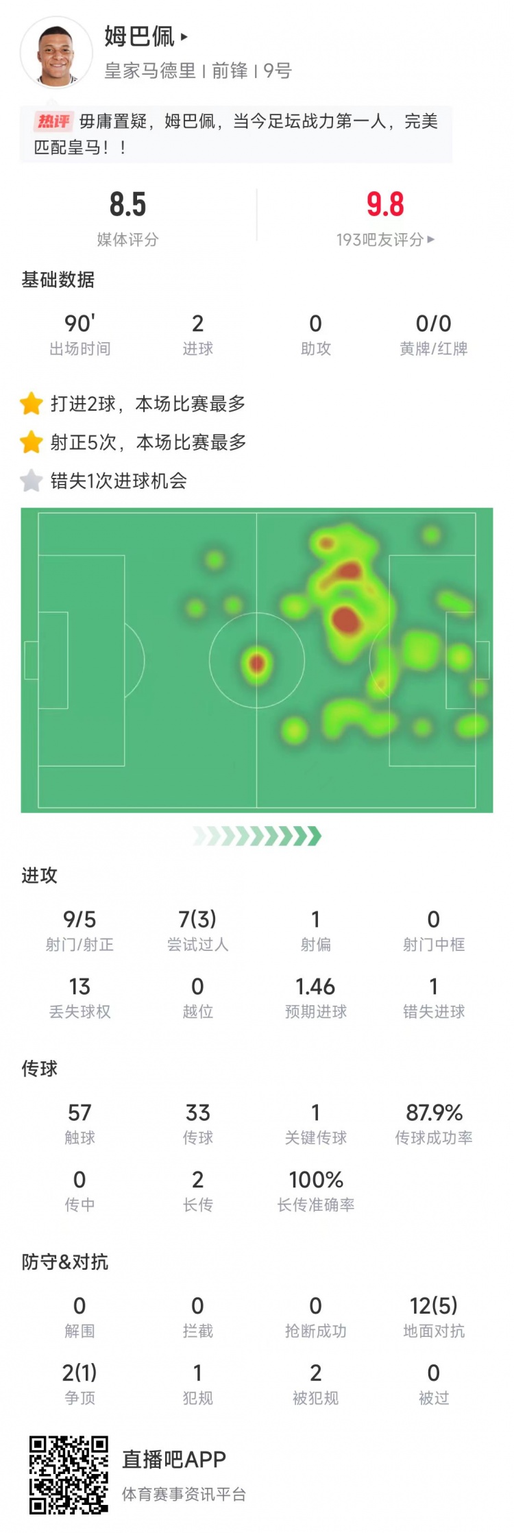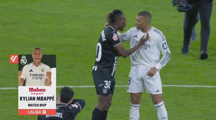 3月30日訊 西甲第29輪比賽,姆巴佩梅開二度,幫助皇馬主場3-2擊敗萊加內斯,他當選本場比賽最佳球員。