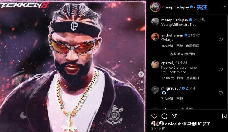 12月7日訊 目前效力巴甲科林蒂安的荷蘭前鋒德佩更新社媒,曬出游戲TEKKEN 8(《鐵拳8》)的封面照,并附文:YoungMillionaire$hit。