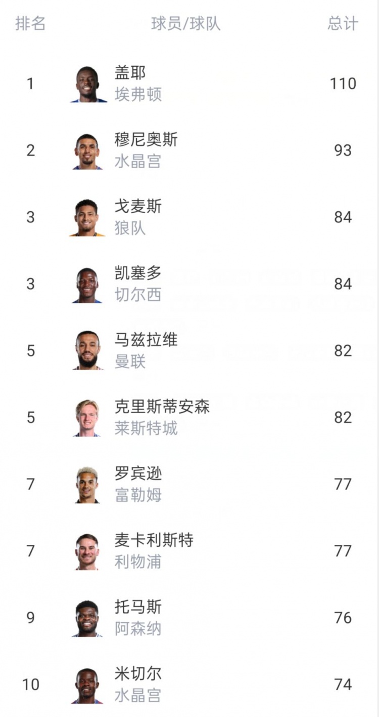 除特別注明外,本站所有內(nèi)容均為24直播網(wǎng)整理排版,轉(zhuǎn)載請(qǐng)注明出處:110次!埃弗頓中場(chǎng)蓋耶是本賽季英超唯一搶斷次數(shù)超100的球員