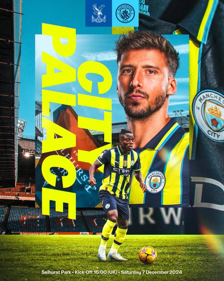 12月7日訊 北京時間今晚11點,曼城將在英超客場挑戰(zhàn)水晶宮,俱樂部今天曬出海報。