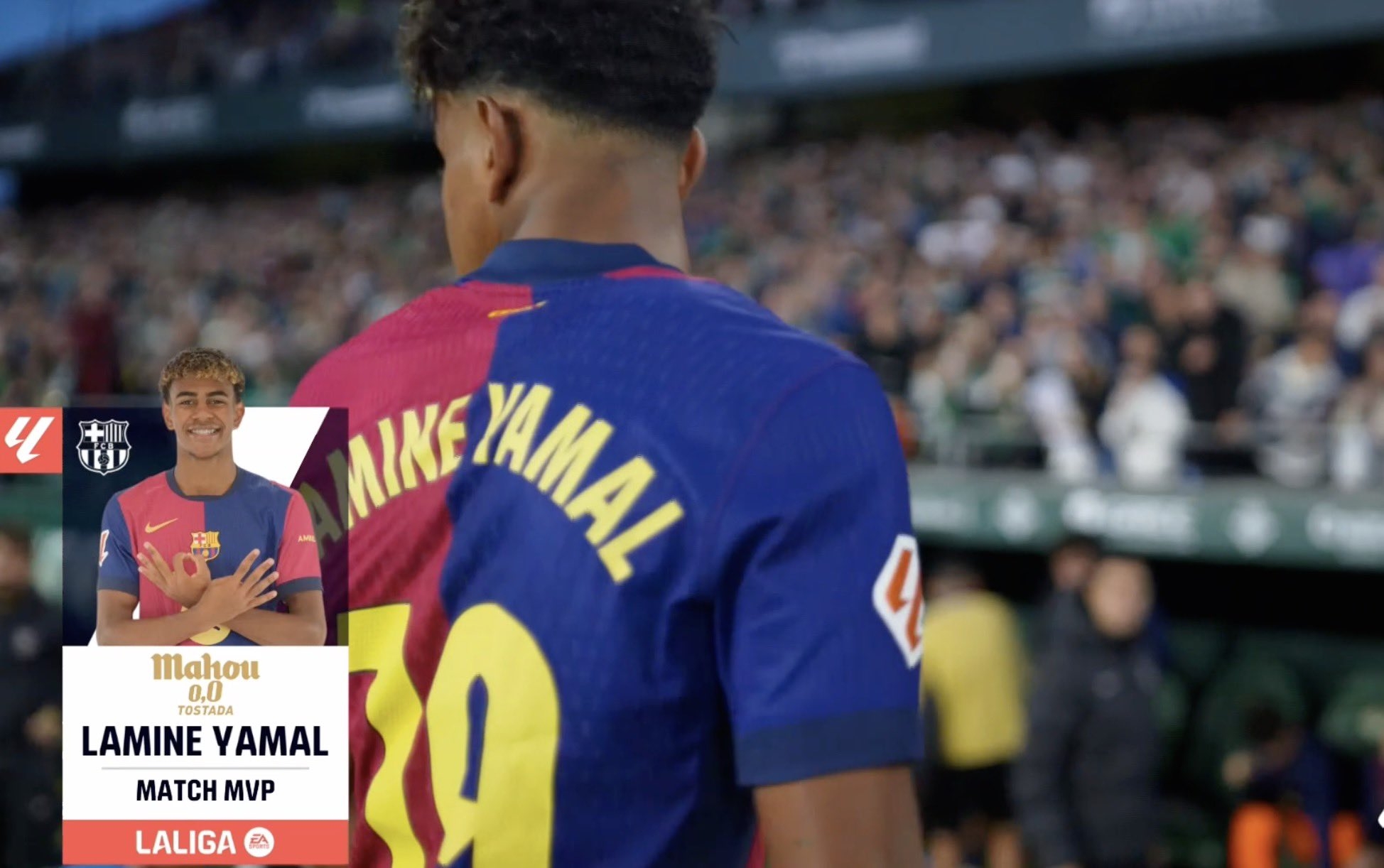 12月8日訊 本輪西甲比賽中,巴薩2-2遭貝蒂斯絕平。賽后,亞馬爾當(dāng)選了全場(chǎng)最佳球員。