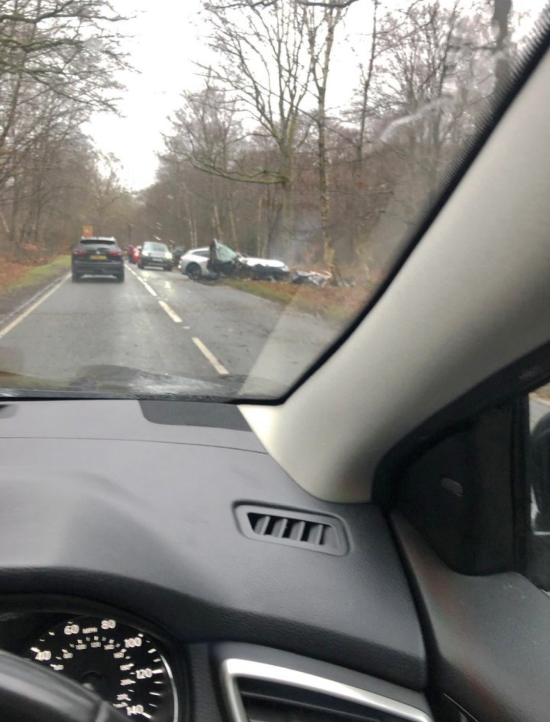 多個消息源曝光了車禍現(xiàn)場照片,英國地區(qū)車輛為右舵,照片可見車輛的右側前半部分幾乎全毀。