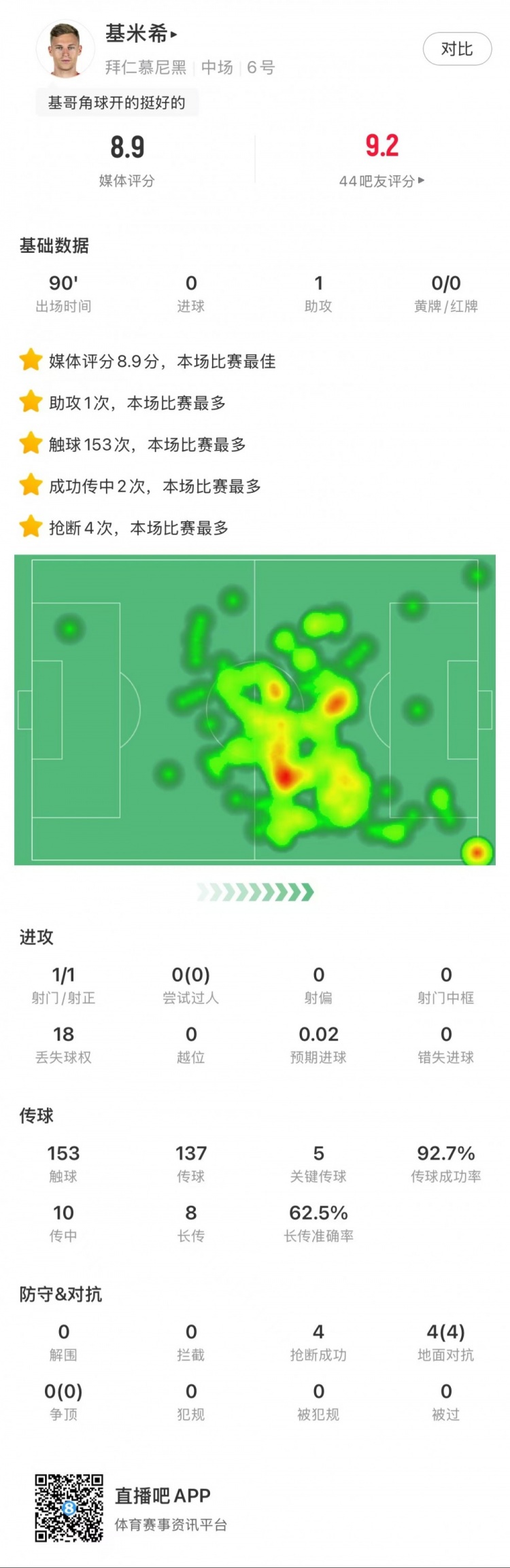 除特別注明外,本站所有內(nèi)容均為24直播網(wǎng)整理排版,轉(zhuǎn)載請(qǐng)注明出處:基米希全場(chǎng)數(shù)據(jù):1次助攻,5次關(guān)鍵傳球,評(píng)分8.9全場(chǎng)最高