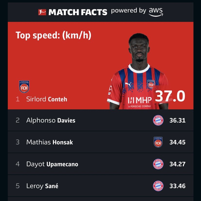 據(jù)媒體統(tǒng)計,28歲的康特出場之后展現(xiàn)了自己的非凡速度,他成為德甲歷史上首位沖刺速度達(dá)到37公里/小時的球員。
