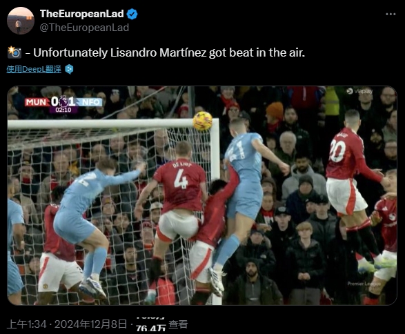 發(fā)布時間:2024年12月08日 08:01點擊:欄目:足球新聞 12月08日訊 英超第15輪,曼聯(lián)2-3諾丁漢森林,自媒體TheEuropeanLad發(fā)布了這一丟球的圖片,并且配文:“很不幸利桑德羅-馬丁內斯在空中被力壓了?!?/p>賽后,該自媒體曬出圖片,圖片中加納喬點贊了他這一條動態(tài),該博主還配上了一個“?”根據曼聯(lián)自媒體博主Sam C的消息,加納喬是不小心點贊的,現在他已經取消了點贊。 除特別注明外,本站所有內容均為24直播網整理排版,轉載請注明出處:又搞事?加納喬點贊稱利桑德羅被力壓的帖子,隨后取消 本文標簽: 足球 英超 曼聯(lián) 諾丁漢森林