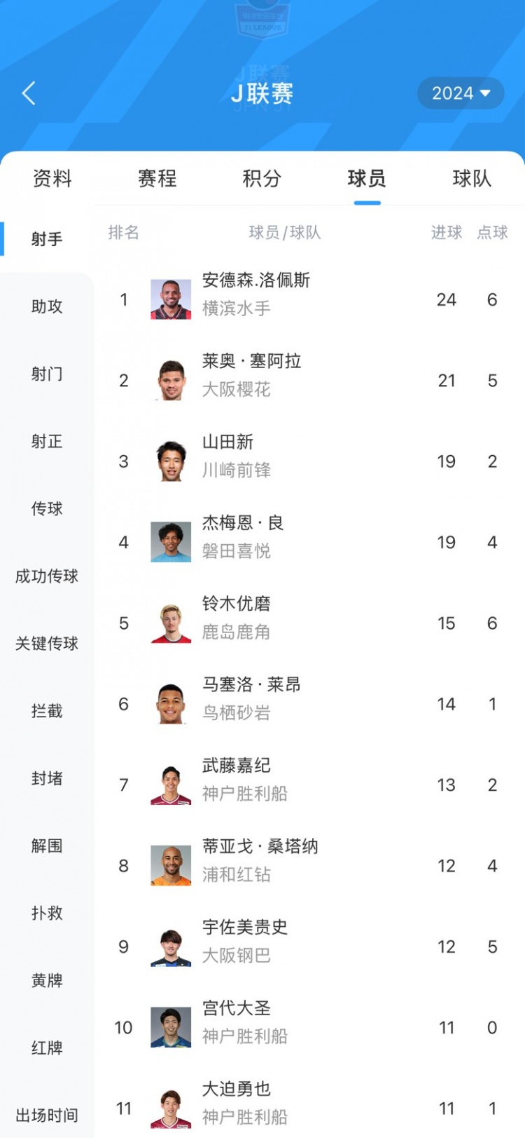 2024賽季J1聯(lián)賽射手榜如下↓↓↓