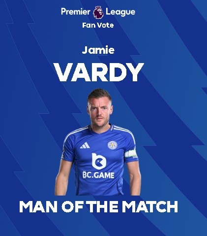 英超官方宣布,37歲的瓦爾迪當(dāng)選本場(chǎng)比賽最佳球員。