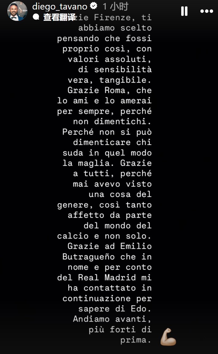 12月3日訊 在本輪意甲聯(lián)賽,佛羅倫薩中場(chǎng)博維暈倒并送往醫(yī)院治療。博維經(jīng)紀(jì)人塔瓦若更新社媒,表達(dá)對(duì)各界關(guān)心的感謝。