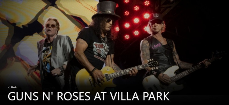 近年來(lái),越來(lái)越多的全球音樂(lè)明星在維拉公園球場(chǎng)演出,包括Bruce Springsteen、P!NK、Foo Fighters等,槍炮與玫瑰也將成為其中一員。