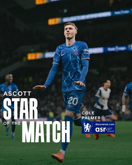 12月10日訊 英超第15輪,切爾西4-3戰(zhàn)勝熱刺,賽后,切爾西俱樂部官方宣布,帕爾默當(dāng)選本場(chǎng)比賽隊(duì)內(nèi)最佳球員。