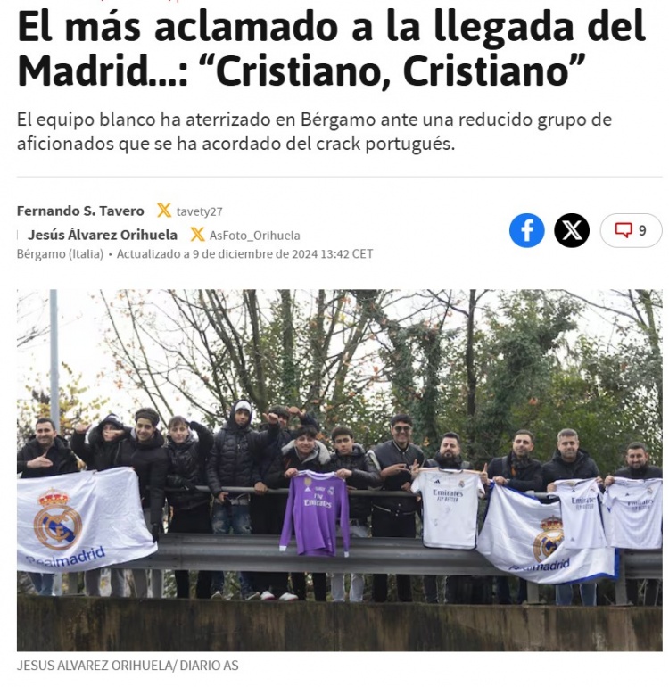 12月10日訊 本輪歐冠,皇馬將客戰(zhàn)亞特蘭大?!栋⑺箞?bào)》報(bào)道,在皇馬抵達(dá)意大利后,球員們收到了當(dāng)?shù)厍蛎缘臍g迎。