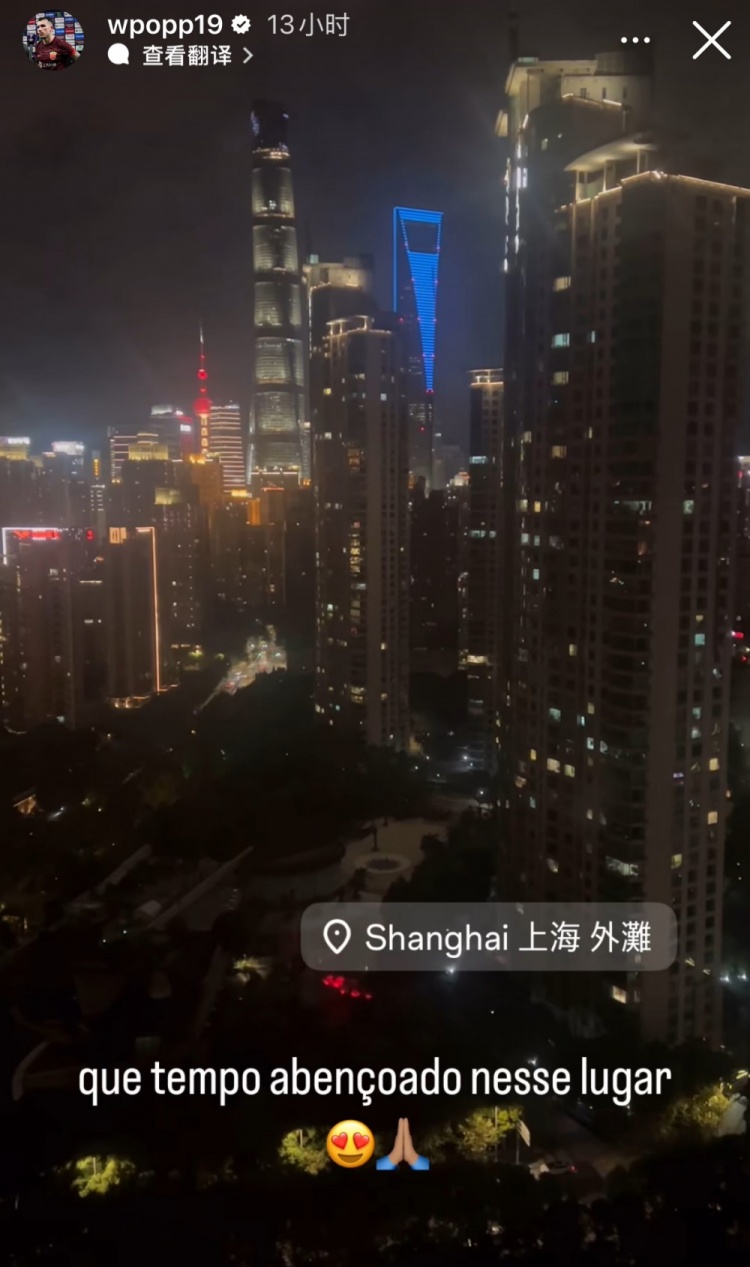 12月10日訊 昨晚,海港外援威廉-波普在社媒曬出了上海的夜景,并直言在這里生活幸福。