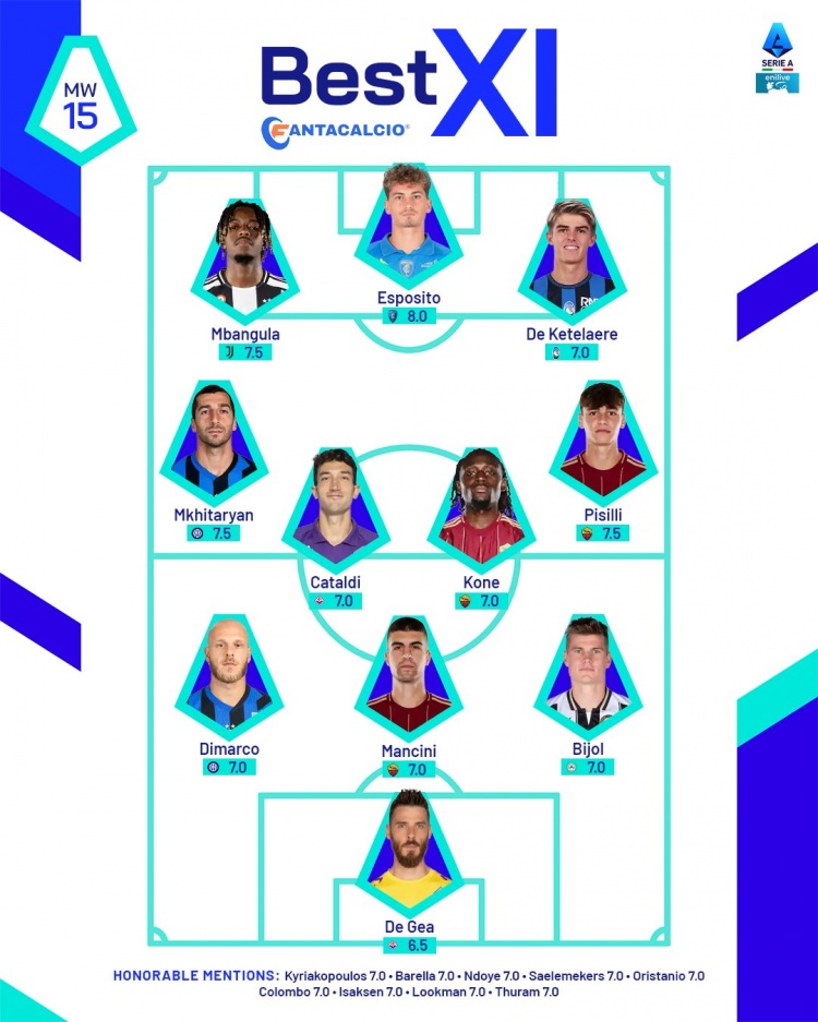 前鋒:姆班古拉(尤文)、埃斯波西托(恩波利)、德凱特拉雷(亞特蘭大)