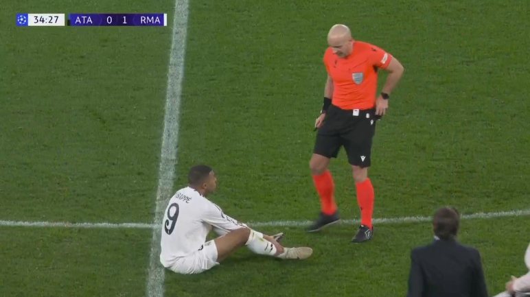 12月11日訊 在皇馬對陣亞特蘭大的歐冠比賽中,姆巴佩在比賽第36分鐘因傷被換下。