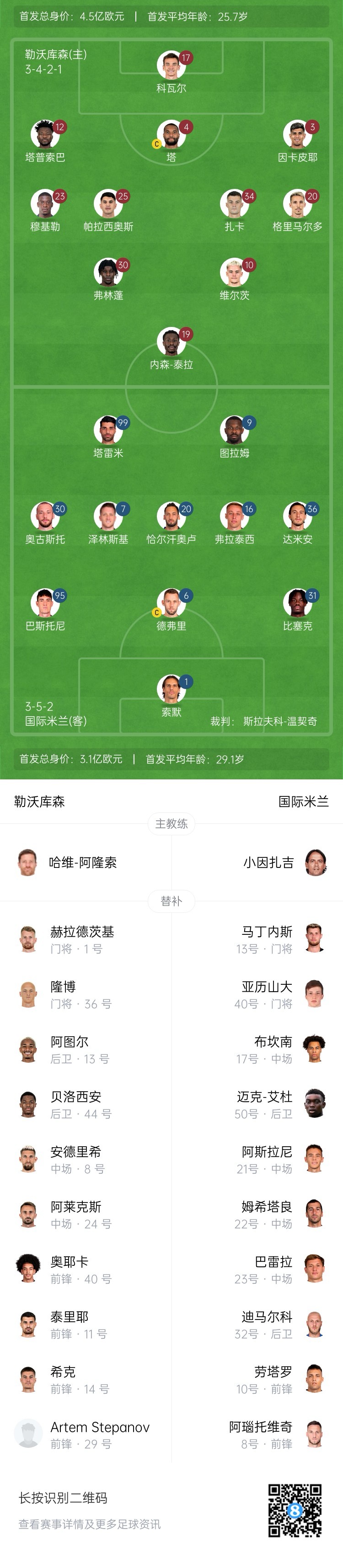 12月11日訊 歐冠第6輪,勒沃庫森主場迎戰(zhàn)國米比賽即將打響。賽前首發(fā)出爐。