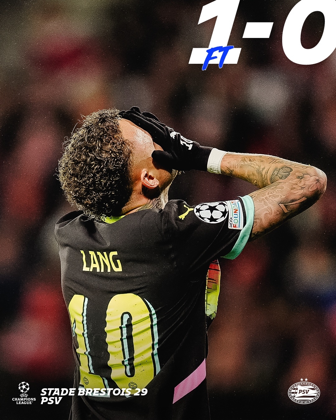 12月11日訊 歐冠第6輪比賽,埃因霍溫0-1不敵布雷斯特,荷甲巨無霸吃到歐冠第2敗。