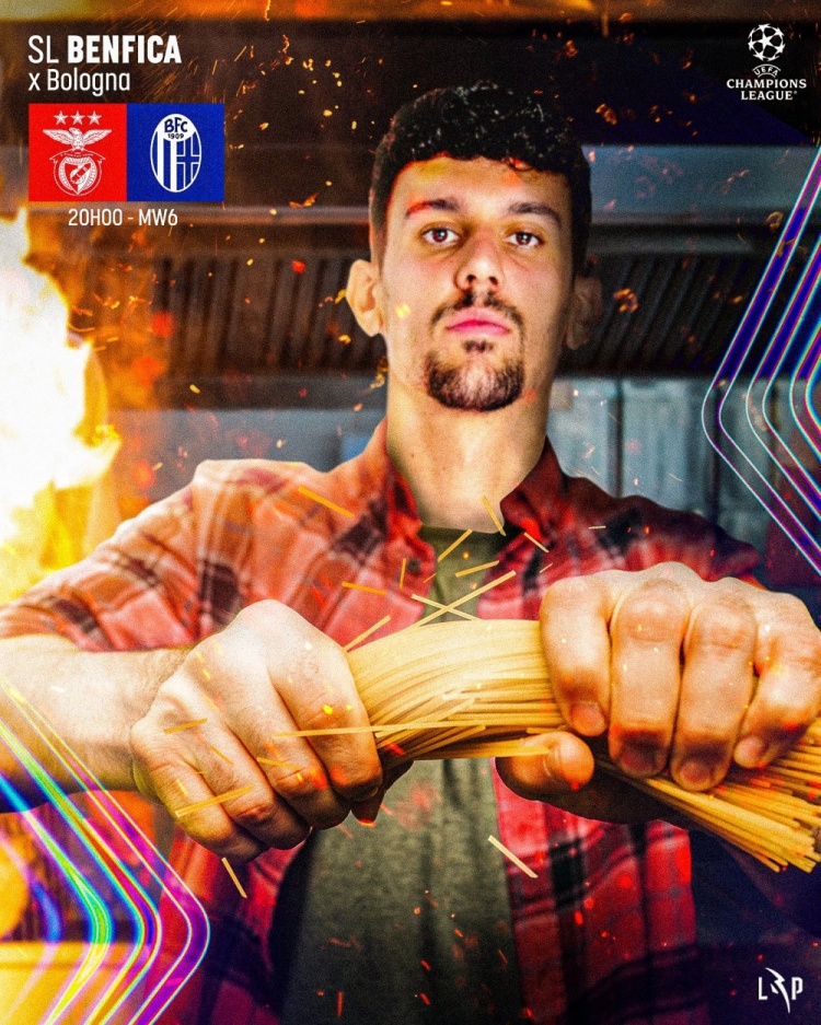 葡超官方社媒發(fā)布了為此役制作的海報(bào),內(nèi)容為本菲卡后衛(wèi)托馬斯-阿勞霍折斷手中的意大利面。