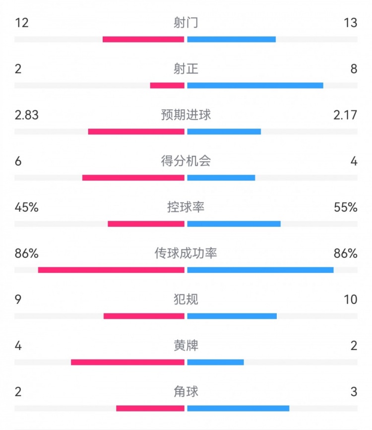 12月12日訊 本輪歐冠,巴薩3-2客勝多特。雙方全場(chǎng)重點(diǎn)數(shù)據(jù)對(duì)比如下↓(主隊(duì)多特在前,客隊(duì)巴薩在后)