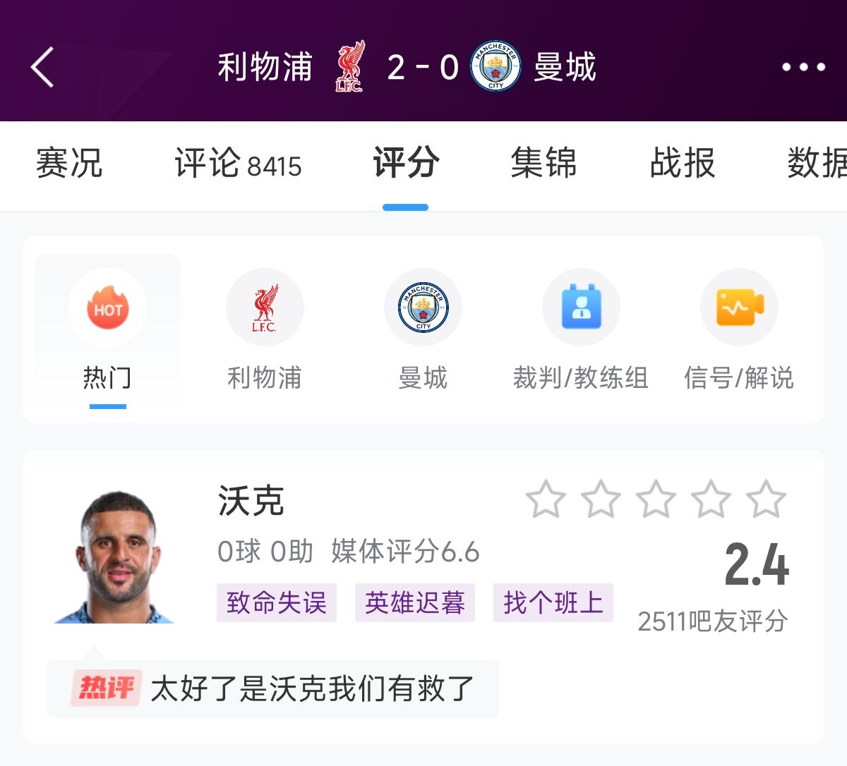 除特別注明外,本站所有內(nèi)容均為24直播網(wǎng)整理排版,轉(zhuǎn)載請注明出處:絕了!老隊長沃克場場被罵評分清一色2分,3-0森林沒首發(fā)獲評6分