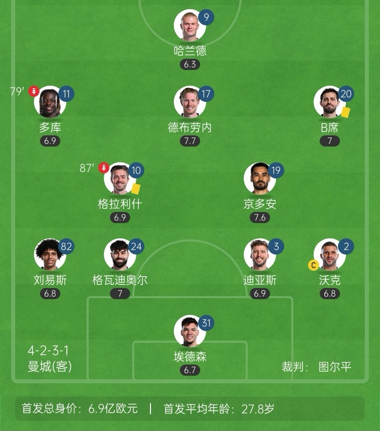 12月12日訊 歐冠聯(lián)賽階段第6輪,曼城客場(chǎng)0-2不敵尤文,瓜帥本場(chǎng)比賽只換了2人,分別是在第79分鐘和第87分鐘。