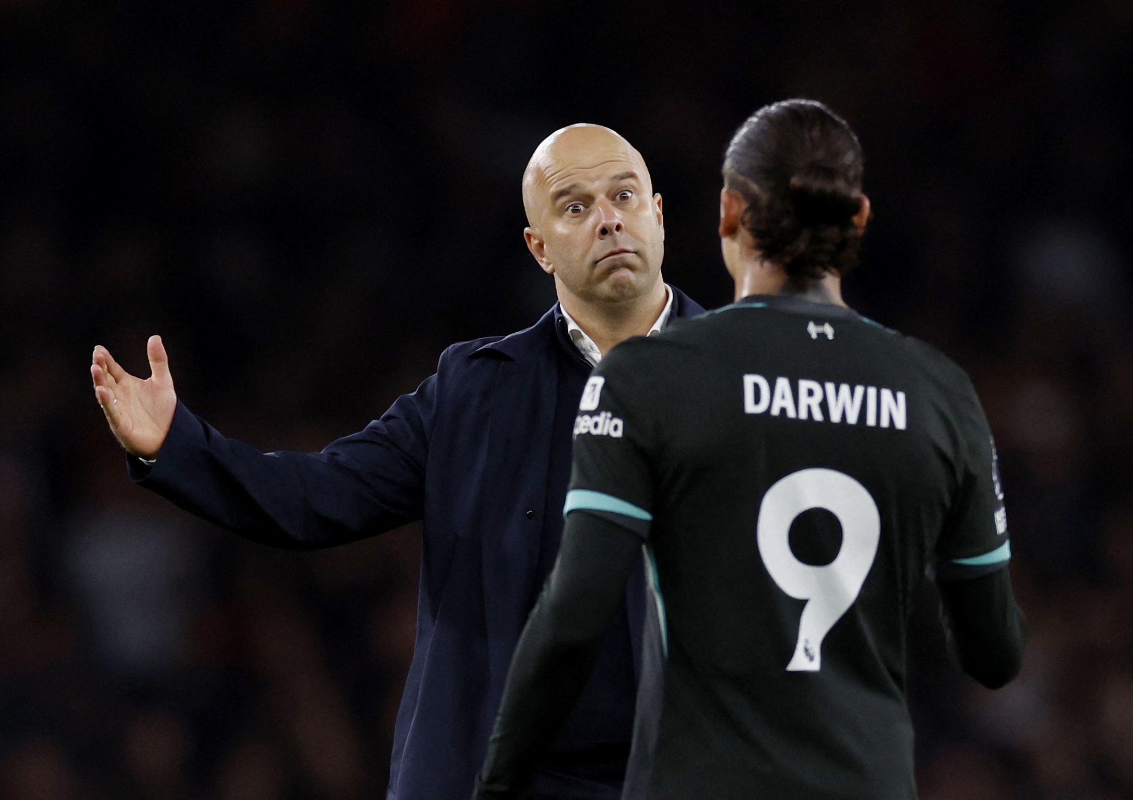 9月21日利物浦3-0伯恩茅斯比賽中,努涅斯打入賽季首球。賽后斯洛特用開玩笑的方式談道:“看到他射門,我的第一反應(yīng)是‘他為什么要射門?’我本來要說‘該為什么不繼續(xù)帶球?’他閃出空間了,防守球員已經(jīng)倒地了。但就過了半秒鐘,我看到皮球貼著門柱內(nèi)側(cè)彈入球門,然后我就好像‘好吧,也許你比我當(dāng)球員那會(huì)強(qiáng)得多’?!?/p>