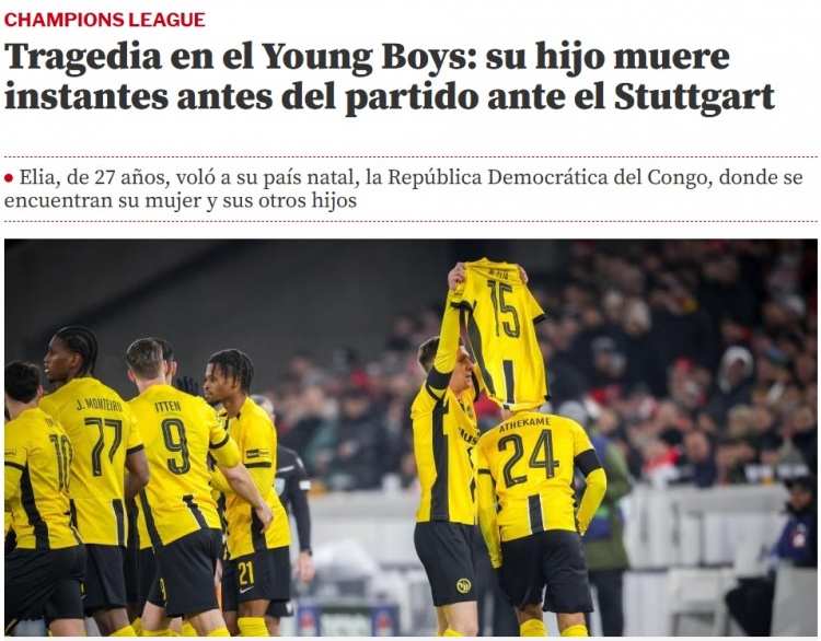 12月12日訊 今天凌晨,瑞士球隊(duì)年輕人在歐冠中1-5慘敗斯圖加特,在賽前幾個(gè)小時(shí),年輕人球員梅沙克-埃利亞得知了自己兒子去世的噩耗。