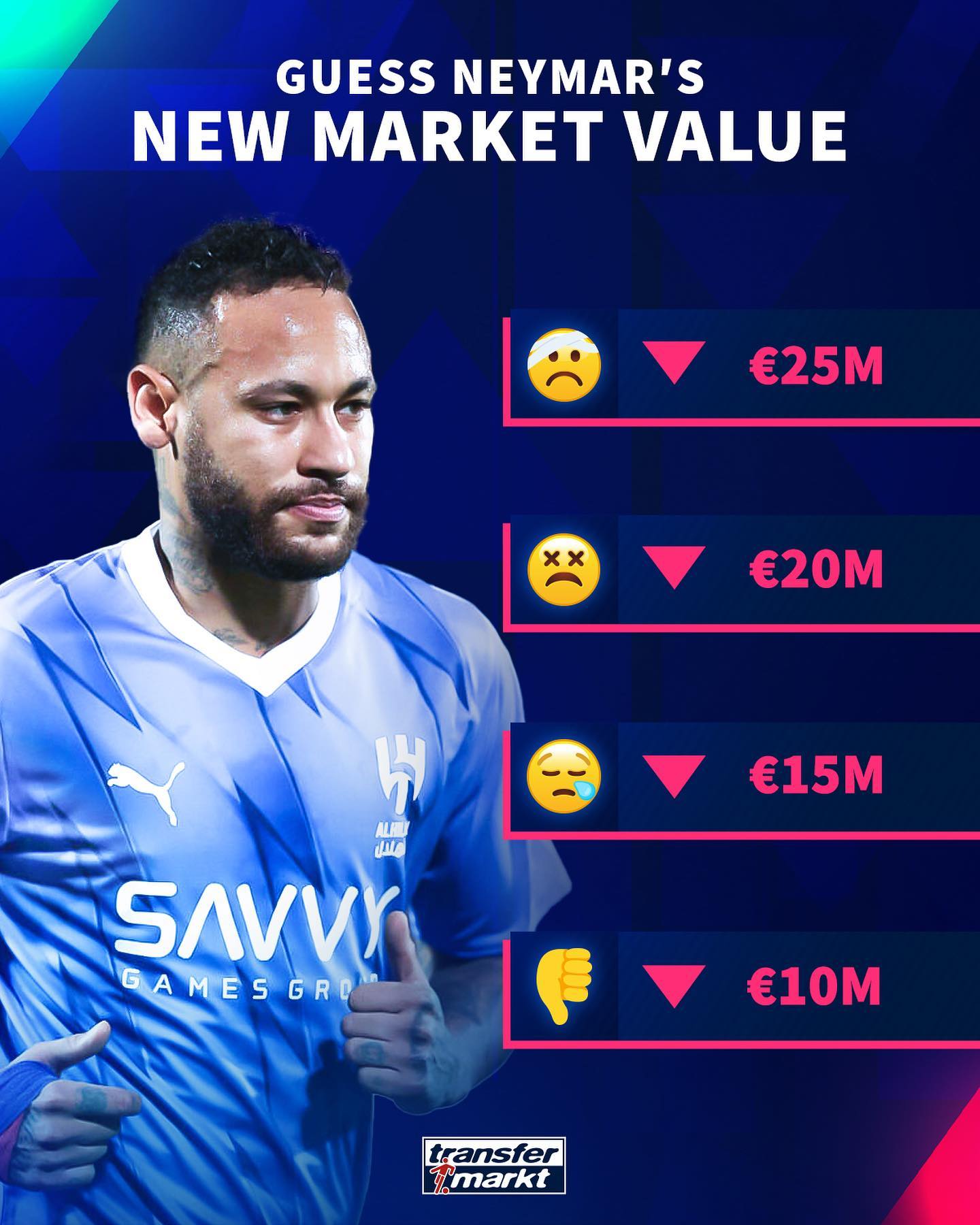 12月13日訊 德轉(zhuǎn)即將更新沙特聯(lián)球員身價(jià),他們也預(yù)熱了內(nèi)馬爾的身價(jià)。
