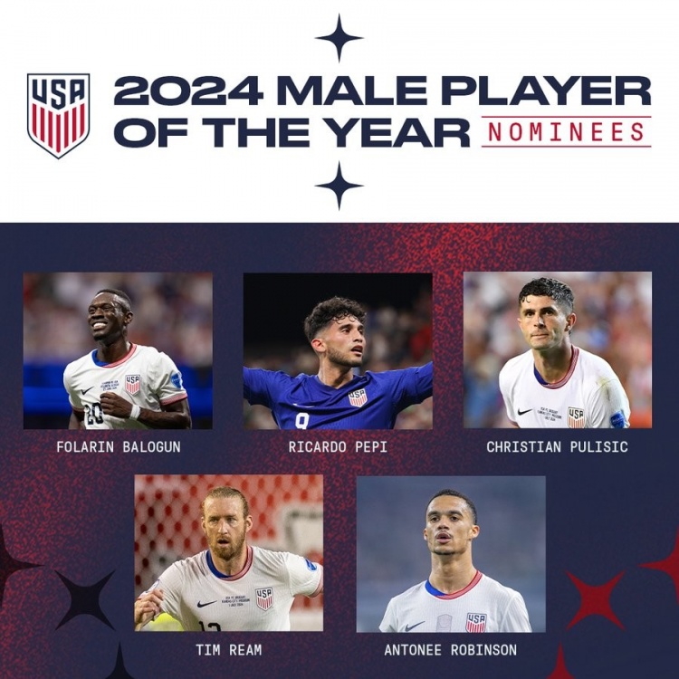 12月4日訊 美國(guó)足協(xié)公布了2024年美國(guó)足球先生5人候選名單,球迷將能夠投票進(jìn)行選擇。