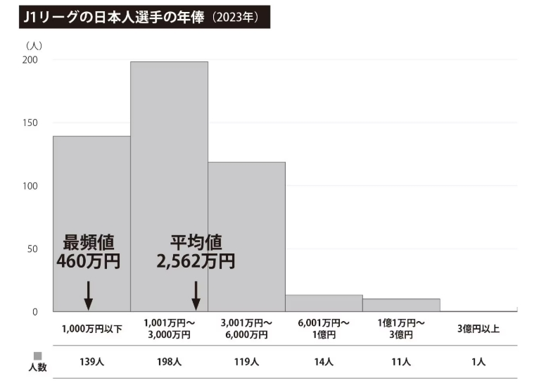 J聯(lián)賽本土球員的平均年薪為2562萬(wàn)日元,約合120萬(wàn)人民幣。而大部分球員的年薪集中在6000萬(wàn)日元以下,也就是280萬(wàn)人民幣以下。而僅僅有一個(gè)人的年薪超越3億日元,也就是年薪超過(guò)了1400萬(wàn)人民幣。