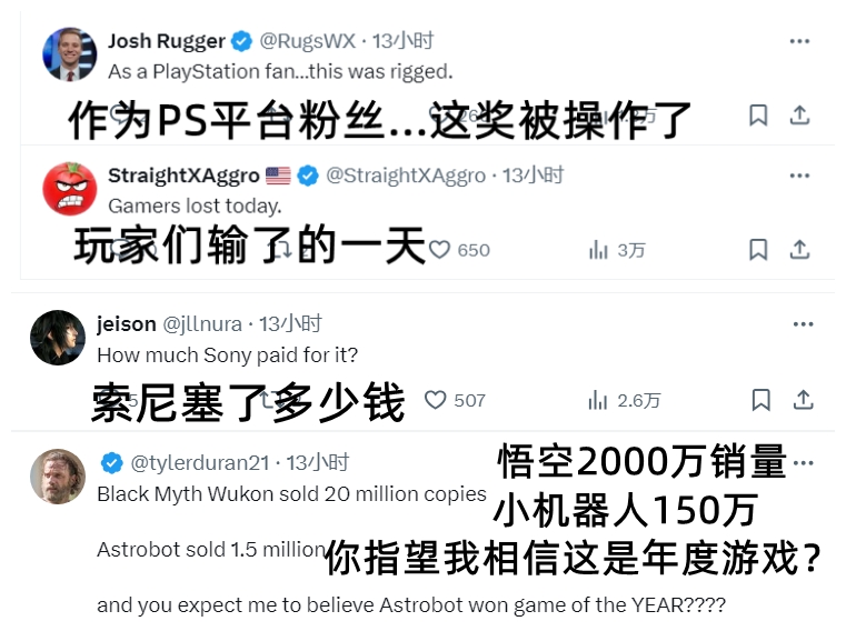 TheGameAwards官方X頒獎動態(tài)下評論: