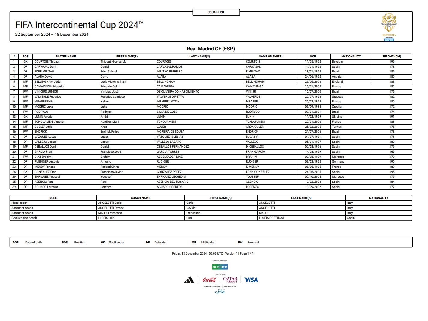 昨日FIFA公布了皇馬本次比賽的26人名單,一線隊(duì)全部入選,包括賽季報(bào)銷的卡瓦哈爾和米利唐,以及其他幾名傷員。