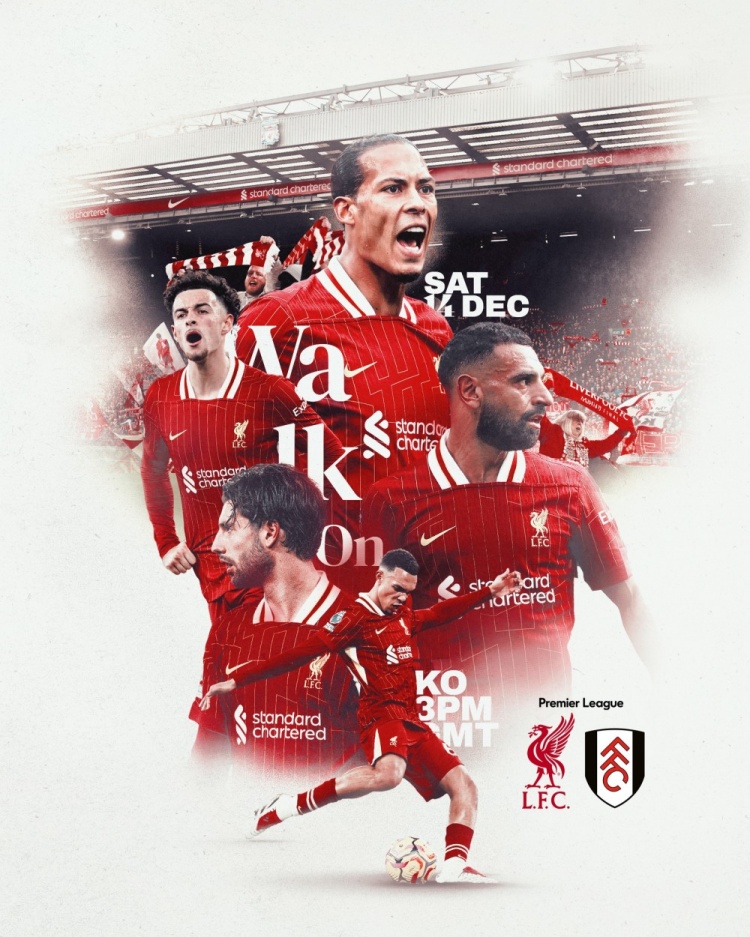 利物浦官方社媒發(fā)布了為此役制作的海報,范迪克、薩拉赫、阿諾德、索博斯洛伊、柯蒂斯-瓊斯出鏡。