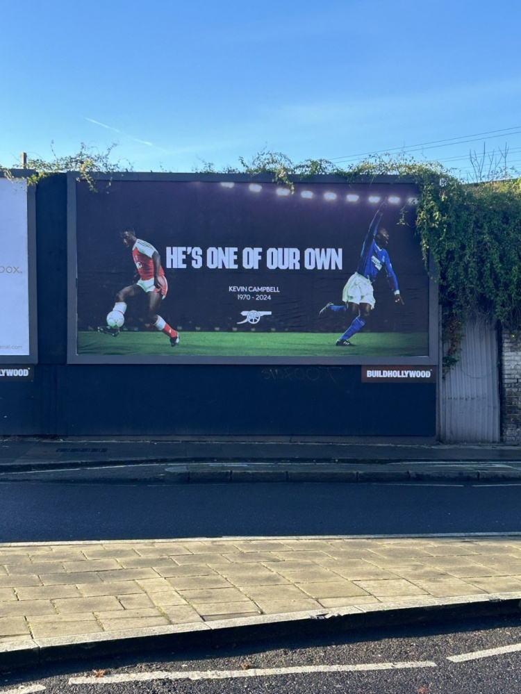 12月14日訊 英超第16輪,阿森納將在主場(chǎng)迎戰(zhàn)埃弗頓。兩家俱樂部通過戶外海報(bào)的方式向已故的雙料舊將凱文-坎貝爾致敬,海報(bào)上是他身穿兩隊(duì)球衣的照片,配文寫道:“他是我們的一員”。這場(chǎng)比賽也是凱文-坎貝爾離世后,槍手與太妃糖的首次交手。