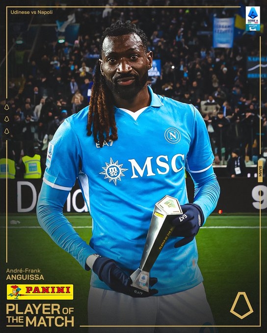 12月15日訊 在剛剛結(jié)束的意甲第16輪比賽中,那不勒斯客場3-1擊敗烏迪內(nèi)斯。賽后,意甲官方宣布,安古伊薩當(dāng)選全場最佳球員。