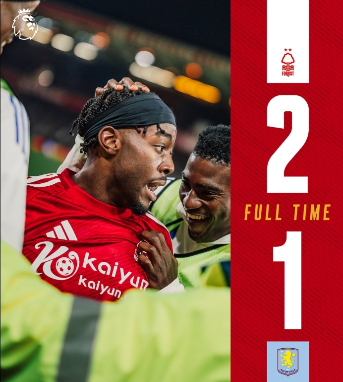 12月15日訊 英超第16輪,諾丁漢森林2-1維拉,連克曼聯(lián)維拉取得兩連勝,暫升積分榜第四位。