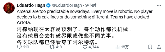 國外球迷在社媒上開始圍攻阿爾特塔↓