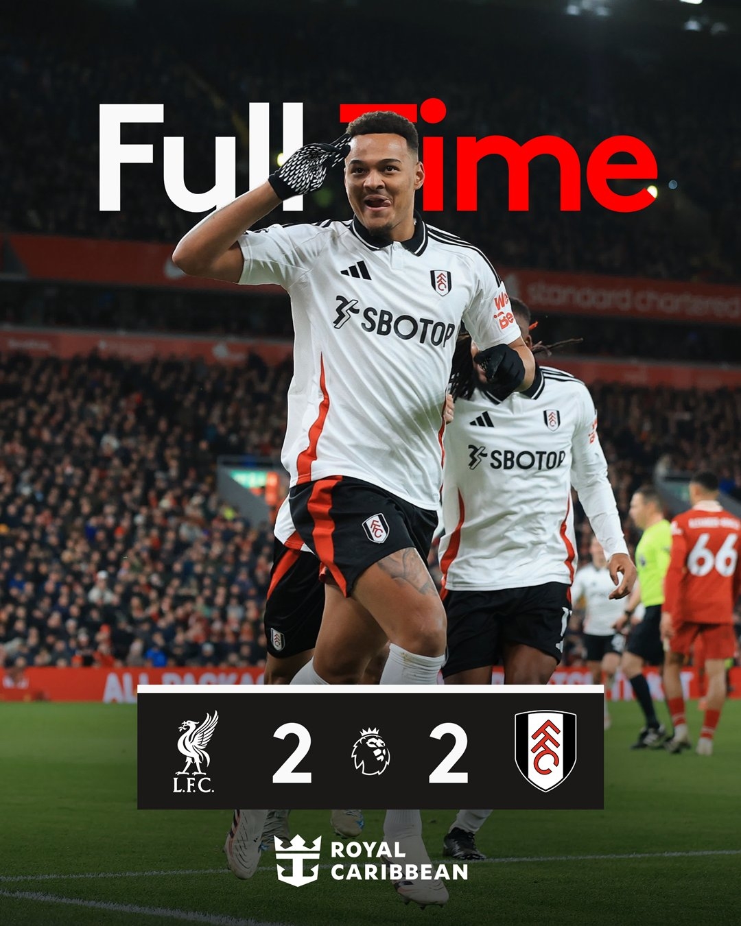 12月15日訊 富勒姆在客場(chǎng)2-2打平利物浦,他們從安菲爾德拿走1分。